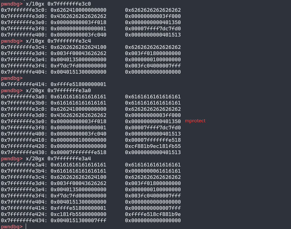 ## 0x3ff000+0x18 给 mprotect的1参,ret地址movrax,执行后0x3ff000+0x18=0x3ff000